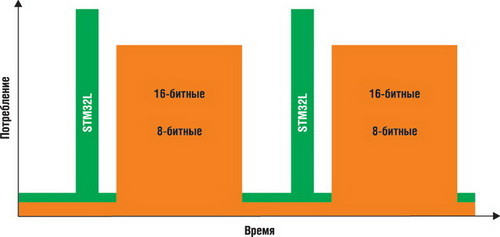 энергопотребления 8- или 16-битных низкопотребляющих МК и STM32L