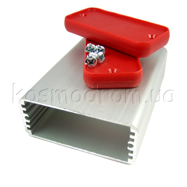 Фото может отличаться от реального вида предмета, но это не влияет на основные характеристики изделия | Корпус BIS-S1-BOX-070-01RD Корпус алюминиевый, анодированный, с пластиковыми крышками, размеры (ДхШхВ): 70х54х23мм. Цвет крышек: красный.