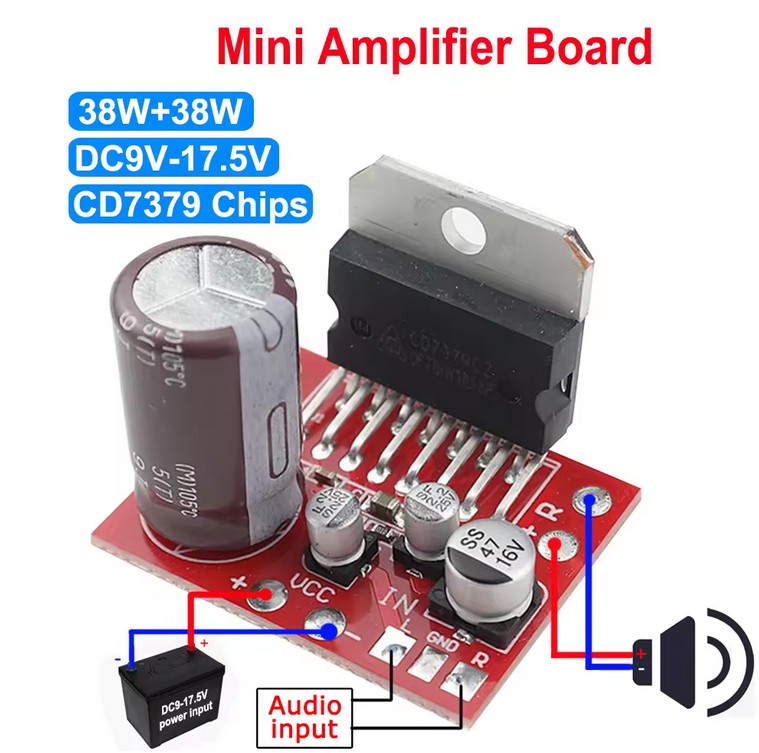 Фото может отличаться от реального вида предмета, но это не влияет на основные характеристики изделия | Усилитель низкой частоты (УНЧ) CD7379-Amplifier стереоаудиомодуль высокой мощности 2?39 Вт / 38 Вт DC, Подходит для воспроизведения звука (MP3, WAV) и используется как компактный усилитель для аудиосистем.