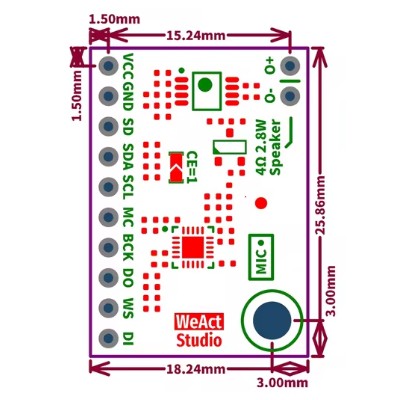 Фото может отличаться от реального вида предмета, но это не влияет на основные характеристики изделия | Отладочная плата ES8311 NS4150B Mono Audio Codec Module модуль с интерфейсами I2C + I2S, со встроенным микрофоном, с драйвером динамика 4 ? мощностью до 2,8 Вт Временно нет на складе...