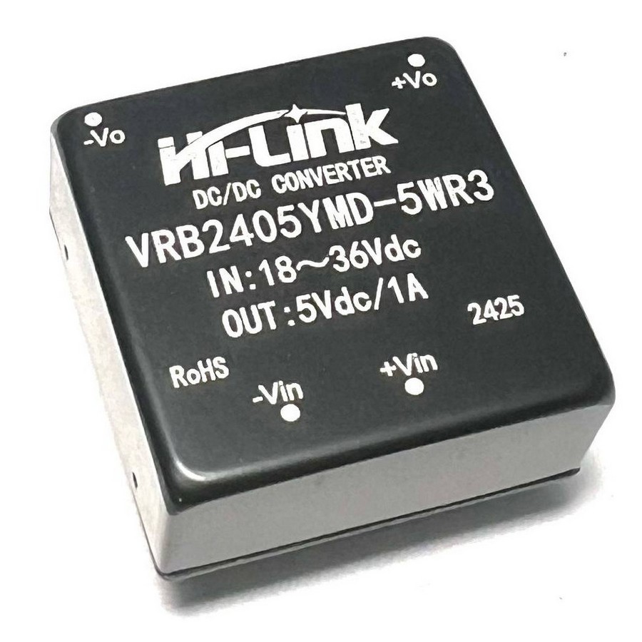DC/DC преобразователь на плату в пластиковом корпусе. Мощность: 5 Вт. Входное напряжение: 24 VDC (18...36 VDC). Выходное напряжение: 5 VDC. Вых. ток: 1А. Кол-во выходов: 1