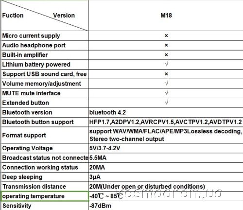 Цифровой стерео усилитель с Bluetooth входом, с низким энергопотреблением, поддерживает передачу Bluetooth 4.2, двухканальное стереофоническое воспроизведение без потерь. Расстояние приема сигнала по Bluetooth может достигать до 20 метров на открытой местности. Данный усилитель имеет компактные размеры и обеспечивает хорошее звучание по двум каналам.