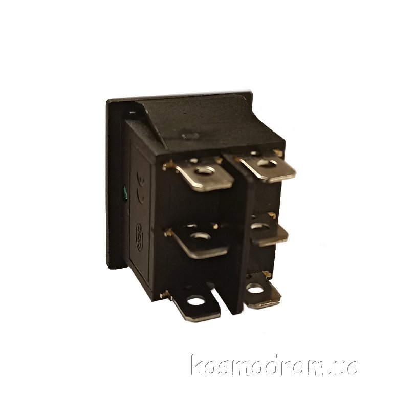 Переключатель Rocker ON-OFF, зеленый, 16А/250В, 20А/125VAC, 6pin.