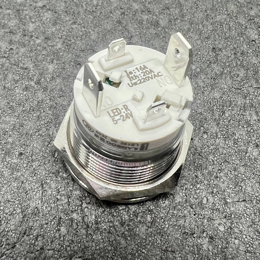 Фото может отличаться от реального вида предмета, но это не влияет на основные характеристики изделия | Кнопка антивандальная LB19E-P10F/E+XDR5-24V/S(L)longpin D=19mm, 1NO, плоская, нормально открытая, БЕЗ ФИКСАЦИИ, круговая LED+DOT, RED (красный), 5-24V, High-Current, MAX: 16A/250VAC