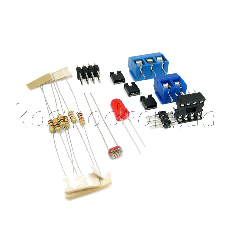 Набор для сборки сумеречного переключателя. Для начала работы нужно произвести монтаж компонентов на печатную плату.