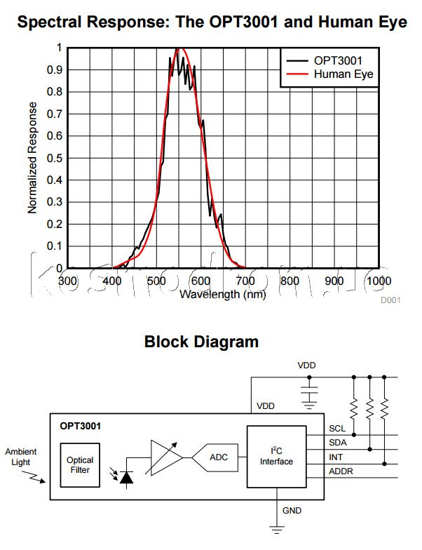 не реагирует на инфракрасные источники излучения. OPT3001 измеряет