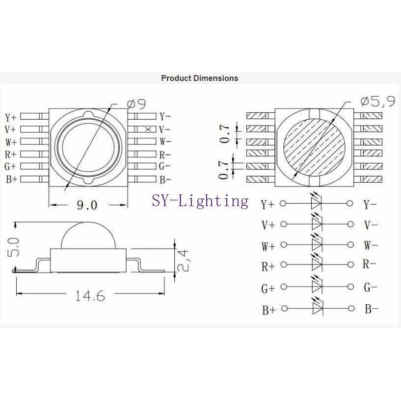 18W (RGBWYV) — это мощный многоцветный светодиод с несколькими