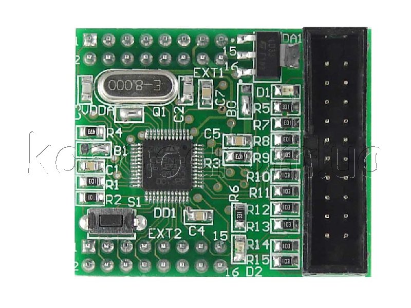 - Все порты микроконтроллера выведены на разъемы расширения EXT1, EXT2