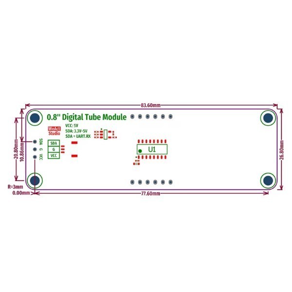 TM1652 0.8 Inch 8.8:8.8 GREEN — компактный модуль индикатора на базе драйвера TM1652 с двухразрядным 8-сегментным светодиодным дисплеем зелёного цвета.