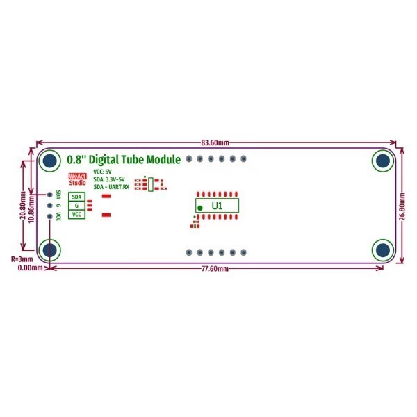 TM1652 0.8 Inch 8.8:8.8 RED — компактный модуль индикатора на базе драйвера TM1652 с двухразрядным 8-сегментным светодиодным дисплеем зелёного цвета.