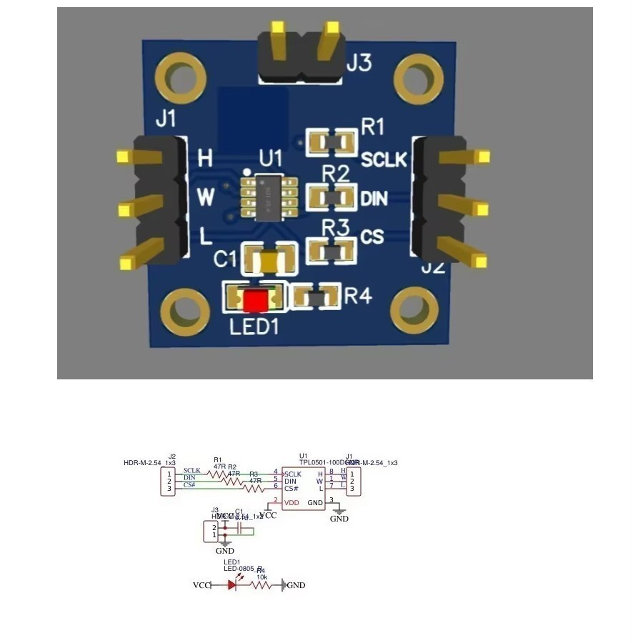 Модуль цифрового потенциометра TPL0501 100K: регулируемый, с интерфейсом SPI,