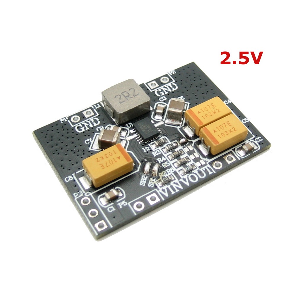 Фото может отличаться от реального вида предмета, но это не влияет на основные характеристики изделия | Бескорпусный источник питания TPS63020-MODUL-2.5V Высокоэффективный модуль питания с повышающе-понижающим преобразователем. Диапазон входного напряжения от 1,8 В до 5,5 В, выходной ток до 3 А, а эффективность до 96%. частота составляет 2,4. Mhz