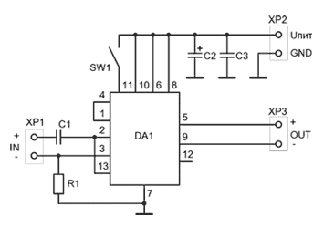 Фильтр устанавливается между линейным выходом источника сигнала и входом УМ сабвуфера. Он хорошо зарекомендовал себя при работе совместно с мощным автомобильным усилителем NM2034 (70 Вт/12 В).