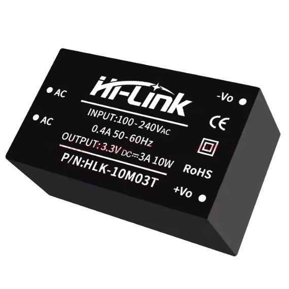| HLK-10M03 Модульный сетевой источник питания на плату AC/DC преобразователь на плату в пластиковом корпусе.Мощность: 10 Вт. Входное напряжение: 220В Выходное напряжение: 3.3В, Вых. ток:3A ном.Кол-во выходов: 1