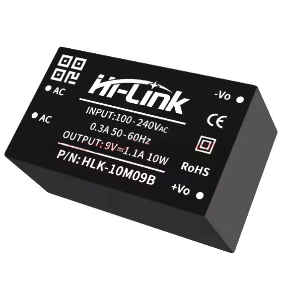 | HLK-10M09B Модульный сетевой источник питания на плату AC/DC преобразователь на плату в пластиковом корпусе. Мощность: 10 Вт. Входное напряжение: 220В. Выходное напряжение: 9V. Вых. ток: 1100mA, 47.5х28.5х22 мм