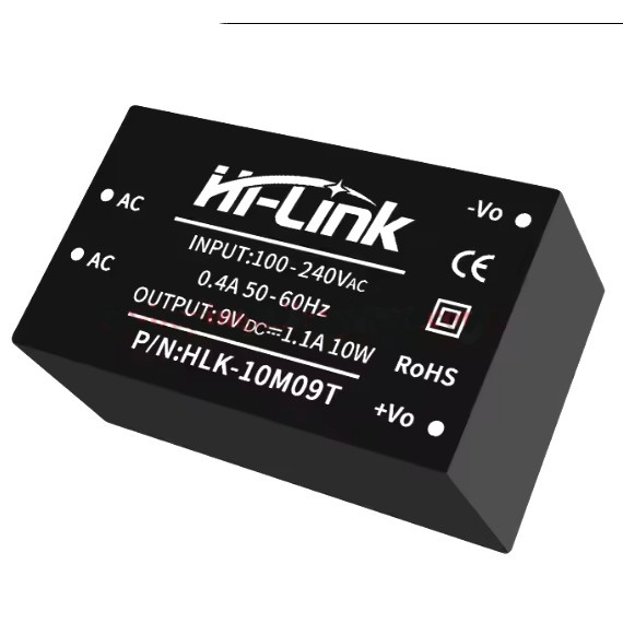 | HLK-10M09T Модульный сетевой источник питания на плату AC/DC преобразователь на плату в пластиковом корпусе. Мощность: 10 Вт. Входное напряжение: 220В. Выходное напряжение: 9V. Вых. ток: 1100mA, 39х23.5х18 мм