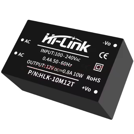 | HLK-10M12B Модульный сетевой источник питания на плату AC/DC преобразователь на плату в пластиковом корпусе. Мощность: 10 Вт. Входное напряжение: 220В. Выходное напряжение: 12V. Вых. ток: 830mA, 47.5х28.5х22 мм