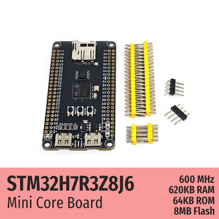| STM32H7R3Z8J6 Mini Core Board Отладочная плата компактная отладочная плата на базе STM32H7 (Cortex-M7 до 600 МГц) для разработки высокопроизводительных встраиваемых систем с богатой периферией и поддержкой отладки SWD.