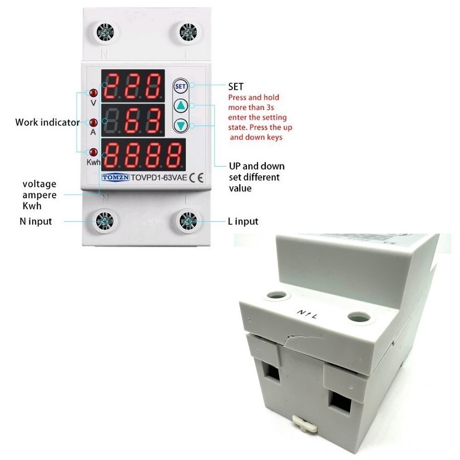 | TOVPD1-63VAE Барьер защитный Однофазное реле контроля напряжения. Защита по току: 0...63 А