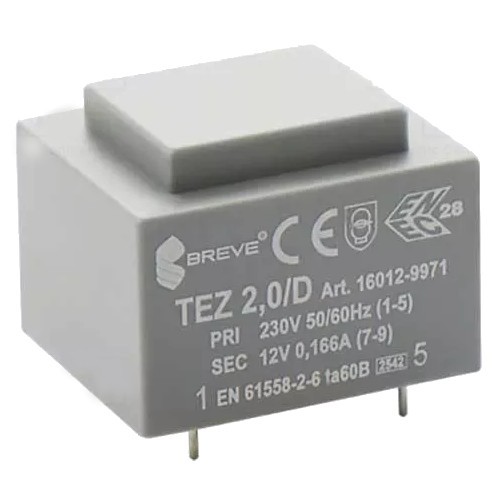 | TEZ2/D/12V Трансформатор Трансформатор: залитый: 2ВА: 230ВAC: 12В: 166,6мА: PCB: IP00: TEZ