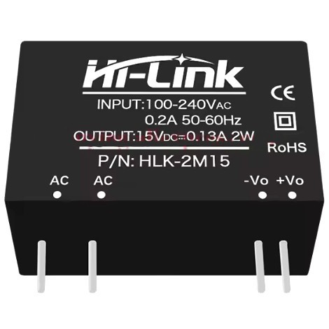 | HLK-2M15 Модульный сетевой источник питания на плату AC/DC преобразователь 2 Вт. Uвх. 220В Uвых. 15В, Iвых: 600 мA ном