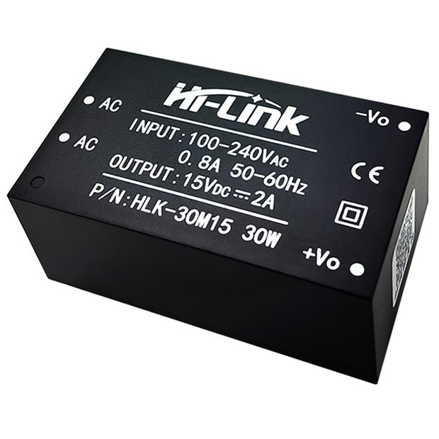 | HLK-30M15 Модульный сетевой источник питания на плату AC/DC преобразователь на плату в пластиковом корпусе. Мощность: 30 Вт. Входное напряжение: 220В. Выходное напряжение: 15V. Вых. ток: 2000mA