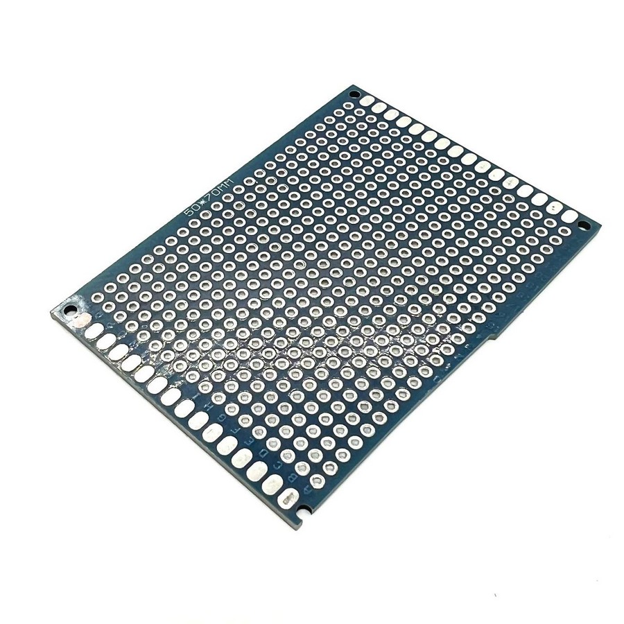 | PCB-2L-B-7X9 Макетная плата печатная Макетная плата, двухсторонняя, с металлизацией отверстий, размеры 70х90 мм. Цвет маски синий. Шаг 2,54 мм.